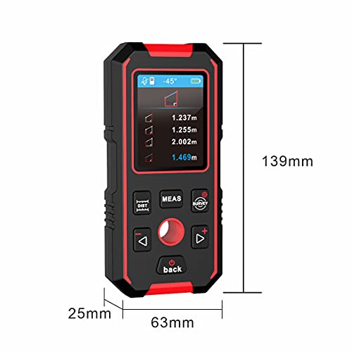 ★ Telemetro laser: raggio di misurazione di 60 m, funzioni avanzate, tra cui misurazione di lunghezza, area, volume, misurazione continua del valore MAX/MIN, teorema di Pitagora, misurazione del triangolo e del trapezio.
