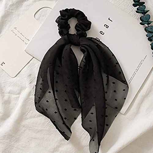 Scafr Scrunchies: 3 Packs black white pink bubble cotton long tail scarf scrunchie, good texture, soft and comfortable, stretchable and elastic, the long scarf is removable, you can untie the bows and retie to use as a scrunchie or a hair scarf to meet your different needs