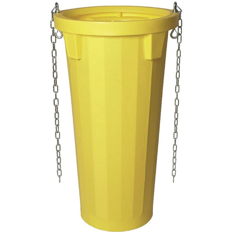 In polietilene. Completo di catene. Colore giallo. Diametro esterno superiore 59 cm.Diametro interno superiore 50 cm.Diametro interno inferiore 38 cm.Altezza 106 cm Misura: PZ Quantità:: 1,0