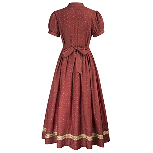 SCARLET DARKNESS Abito da donna Renaissance con maniche a sbuffo, colletto alto con cintura, linea ad A, Rosso mattone a pois, XXL