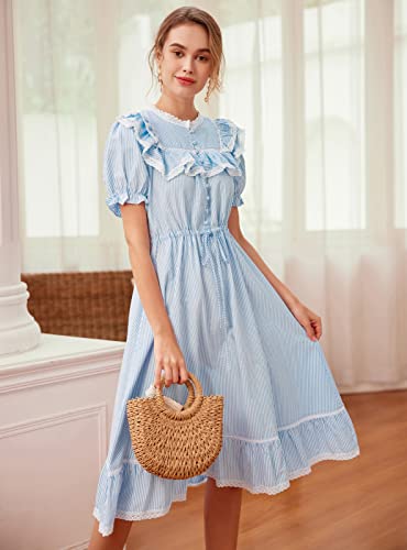 SCARLET DARKNESS Abito da donna in stile vittoriano, a righe, con balze A, Azzurro cielo #190, XL