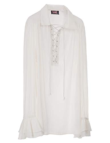 SCARLET DARKNESS Camicia da Uomo Pirata Gotica Medievale Steampunk Rinascimentale Manica Lunga in Pizzo Pizzo Volante Taglia L Bianco SL15