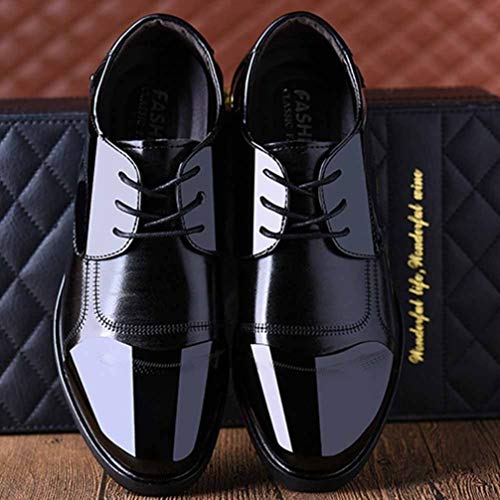 Scarpa da Uomo Derby con Rialzo in Altezza Punta a Punta Primavera Autunno Scarpa da Sposa Stringata Flat Low-Top Scarpa in Pelle Verniciata Marrone Nera