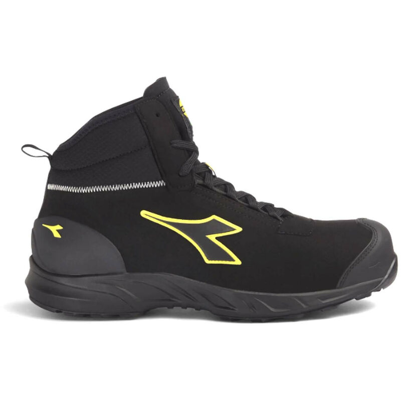 Calzatura di sicurezza alta S3 idrorepellente in microfibra tecnica effetto camoscio, resistente alla trazione, lacerazione e flessioni ripetute. Protezione della punta e protezione del tallone in TPU antiabrasione. Vibram Litebase Technology, puntale in alluminio 200J. Calzata 11. Fodera Air Mesh con antiscalzante in microfibra, K SOLE ECO ultraleggera. Plantare anatomico antistatico estraibile in PU espanso a celle aperte, traspirante con carboni attivi. ESD. Caratteristiche: Colore Nero/Nero Taglie 38/48