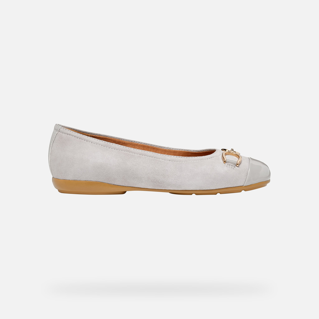 Ballerina donna con punta rotonda dall'estetica bon-ton, perfetta dall'ufficio al tempo libero. Ballerina donna con punta rotonda dall'estetica bon-ton, perfetta dall'ufficio al tempo libero. Realizzata in una combinazione di morbido camoscio e materiale effetto vernice ton-sur-ton, è qui presentata in una tenue tonalità grigio e grigio chiaro. Arricchita da un sobrio dettaglio metallico, Annytah aggiunge un tocco di classe al guardaroba cittadino e garantisce comfort e traspirabilità.
