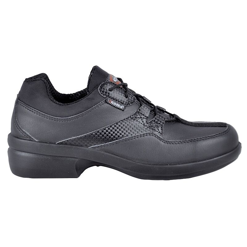 Scarpa Cofra con livello di Sicurezza S2 - Serie WOMEN'S, modello GILDAScarpe antinfortunistiche basse per donna, con suola in poliuretano monodensità con disegno irregolare che garantisce un' ottima aderenza sia longitudinale che trasversale. La mescola a bassa densità offre alla suola flessibilità e leggerezza. Tallone rialzato con tacco di 25 mm per una perfetta distribuzione del peso corporeo su pianta e tallone, con sistema di assorbimento dello shock d' impatto.Tomaia in Microtech idrorepellente. Fodera traspirante che assorbe e deasorbe. Mezza soletta in pelle imbottita nel tallone, con puntale in acciaio. Dati Tecnici TomaiaMICROTECH idrorepellente FoderaSANY-DRY traspirante, antibatterica SolettaMezza soletta in pelleSuolaPoliuretano monodensità PuntaleAcciaio