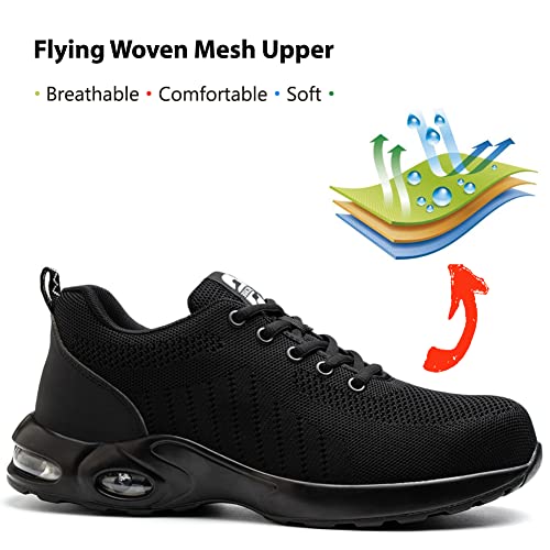 Scarpe Antinfortunistiche Uomo Donna Leggere Scarpe da Lavoro con Punta in Acciaio Traspiranti Antiscivolo Scarpe Sportive di Sicurezza Nero B EU 38