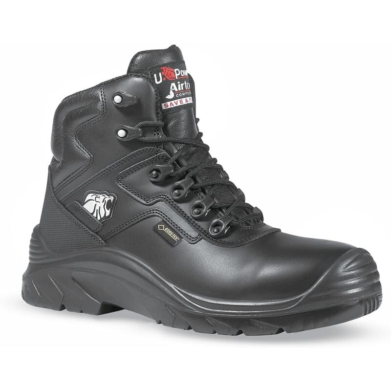 Le scarpe antinfortunistiche alte Drop GTX GO10054 U-Power sono classiche e robuste scarpe da lavoro completamente metal free . Comode ed adatte ad un utilizzo prolungato in ambienti lavorativi, le Drop GTX GO10054 della linea Gore-Tex sono caratterizzate dalla tomaia in morbida pelle fiore idrorepellente e fornite di puntale Composite. Completano il prodotto la suola antiscivolo in PU/Nitrile e la lamina ergonomica antiperforazione Save&Flex, rispettano la classe di protezione S3 HRO HI CI WR SRC. Perfette per un utilizzo in ambienti di lavoro umidi, rispondono alle normative EU EN ISO 20345:2011. Tipologia: Scarpe antinfortunistiche alte Lamina antiperforazione: Save & Flex ® PLUS Puntale: AirToe ® Composite Normativa Europea: EN ISO 20345:2011 Suola: Nitrile Intersuola: PU espanso Battistrada: Nitrile Antiolio: Sì Antiscivolo: Sì Antistatico: Sì Resistenza suola: + 300° (1 min) Tomaia: Pelle pieno fiore Fodera: Membrana GORE-TEX ® Performance Traspirante: Sì Metal