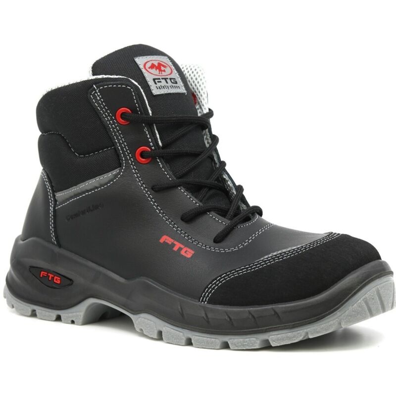 Comode e dal design accattivante, le scarpe antinfortunistiche FTG Legend S3 SRC sono robuste e molto resistenti, hanno suola antiscivolo e antistatica e sono particolarmente indicate anche per lavorare nei cantieri più difficili. Altamente protettivi per il puntale e la suola in gomma rinforzata, resistenti alla flessione e all'abrasione, le FTG Legend S3 sono molto apprezzate da chi è alla ricerca di scarpe antinfortunistiche a prezzi imbattibili e realizzati con materiali di elevata qualità. Inconfondibili per la linea sobria ed elegante, questo scarponcino nero con inserti in rosso è decisamente accattivante e dinamico, ottimo da utilizzare anche per uso quotidiano. FTG Legend S3 scarponcino ideale per l'inverno Fra le scarpe antinfortunistiche di modelli alti le FTG Legend si distinguono per il design, la qualità dei materiali e per il sistema di protezione totale del corpo che assicura contro l'olio e la resistenza allo scivolamento. Queste scarpe medio-alte, ideali per i
