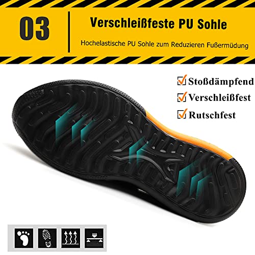 Scarpe Antinfortunistiche Uomo Leggere e Comode Scarpe da Lavoro Donna con Punta in Acciaio Traspiranti Antiscivolo Scarpe Sicurezza, Arancione, EU 42
