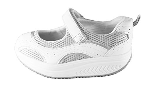 SCARPE APERTE RASSODA GLUTEI BENESSERE DIMAGRANTI SPORTIVE FITNESS BASCULAN (Bianco, Num 39: 24.5 cm)