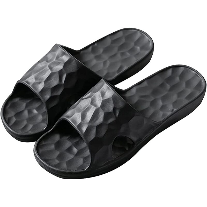 Materiale superiore: etilene vinilacetato Materiale interno: realizzato in materiale delicato sulla pelle, EVA. Il materiale EVA leggero e resistente può essere piegato liberamente, abbastanza resistente per il tuo uso quotidiano. Suola: materiale EVA. Queste pantofole da doccia sono progettate con suole antiscivolo scanalate per aumentare l'attrito e prevenire lo scivolamento quando sono bagnate ed evitare superfici asciutte. Perfetto per l'uso in ambienti umidi come il bagno. Chiusura: senza clip Larghezza scarpa: stretta MATERIALE EVA< /b > Realizzato in materiale delicato sulla pelle, EVA. Il materiale EVA leggero e resistente può essere piegato liberamente, abbastanza resistente per il tuo uso quotidiano. ANTISCIVOLO T < /p> Le nostre pantofole da doccia sono progettate con suole scanalate antiscivolo per aumentare l'attrito e prevenire lo scivolamento su superfici bagnate e asciutte. Perfetto per l'uso in ambienti umidi come il bagno. MORBIDA E FLESSIBILE < p>La doccia Le