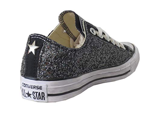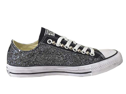 Scarpe Tela Basse Nere Glitter Strass Borchie Personalizzate (Nero, 38)