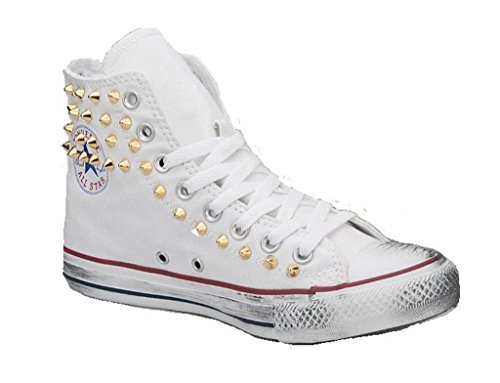 Scarpe Borchiate (Artigianali) con Borchie Punta Cono Oro cavigliera Effetto Invecchiato