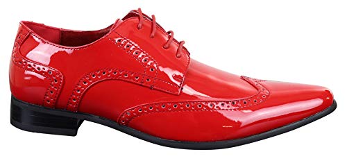 Scarpe Brogue Uomo Rosse Eleganti Vintage Lucide Rosso 8UK / 42EU