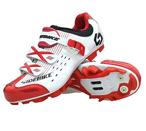 Scarpe MTB Ciclismo Mountain Bike Professionali Traspiranti per Uomo e Donna, compatibili Pedali SPD (45, Bianco)