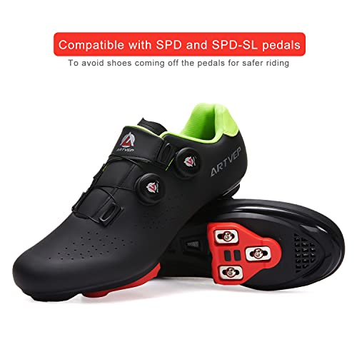 Scarpe da Ciclismo da Uomo Scarpe da Bici da Strada Compatibile con SPD e Delta Blocco Pedale Scarpe da Bicicletta Green Black EU 44