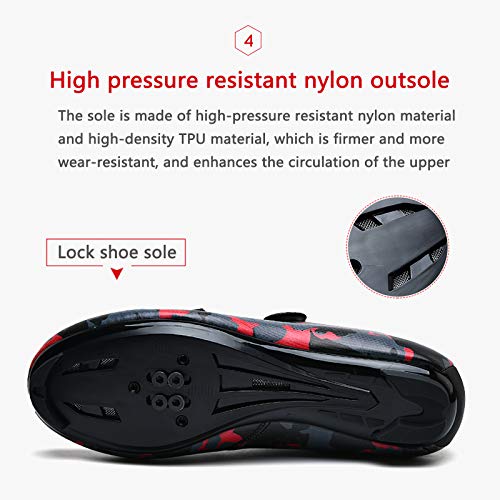 Scarpe da ciclismo da uomo, scarpe da ciclismo da strada e mountain bike, scarpe da ciclismo da strada, scarpe da bici con pedale SPD e Delta Cleats Lock, Rosso mimetico., 42 1/3 EU