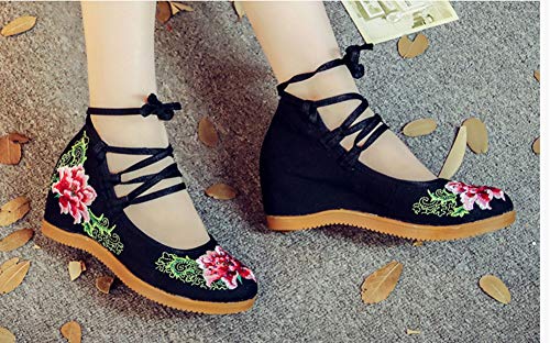 XLH Scarpe Classiche di Cheongsam da Donna Casual Scarpe Floreali Ricamate Cinesi Hanfu Scarpe da Sposa Scarpe da Sposa Scarpe da Donna,Nero,EU40