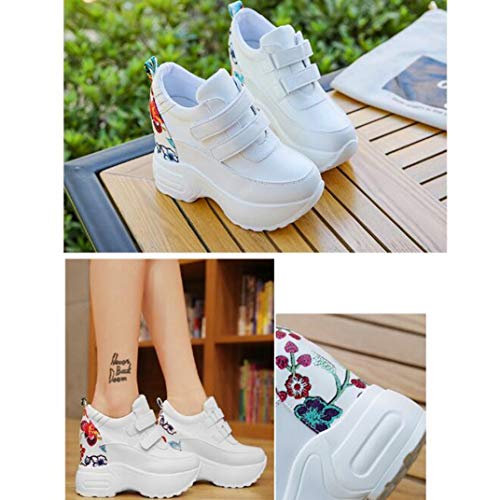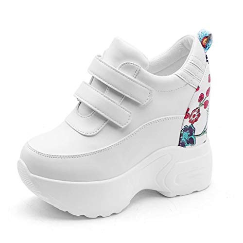 Scarpe da Corsa da Donna Scarpe Singole Casual Moda Colore Solido Interno Scarpe Alte Scarpe da Ginnastica in Pelle Traspirante Scarpe con Zeppa Femminile