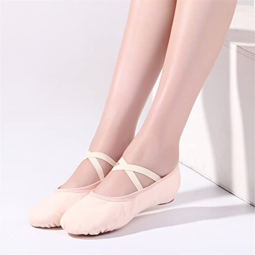 Scarpe Danza Classica Tela Scarpette Ballo Mezze Punta Suola Spezzata Ginnastica Ballo per Bambini Ragazze Donna Adulto Beige 28