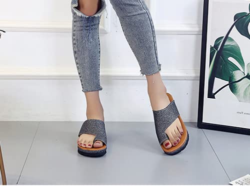 QAZW Scarpe da Donna PU Comoda Piattaforma Suola Piatta Donna Casual Girasole Morbido Alluce Correzione del Piede Sandalo Correttore Ortopedico per Alluce Valgo,Black-41