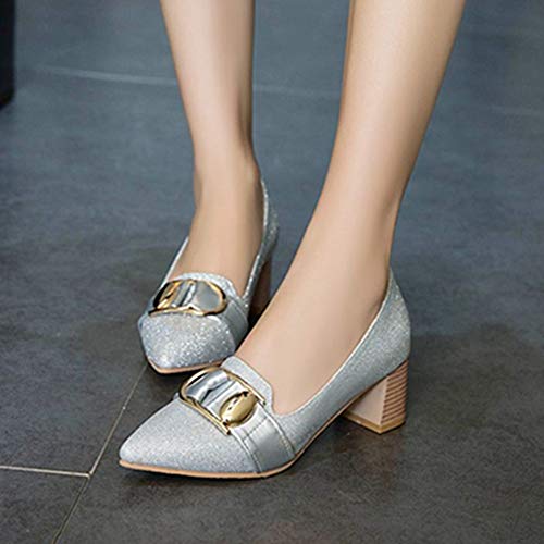 SJJH Scarpe da donna eleganti con tacco a blocco, Nero (argento), 32 EU