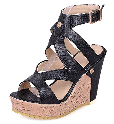 Scarpe Donna Estive Eleganti Scarpe Donna,Sandali con Zeppa con Motivo A Serpente. Grandi Dimensioni 40-43 Metri Super Alto con Scarpe Romane. Scarpe Moda Tacco Grano Legno, 34, Nero