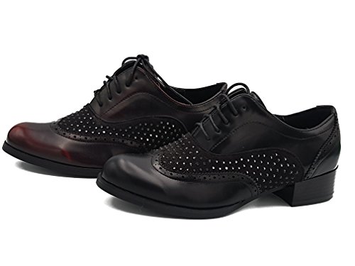 Scarpe donna francesine stringate basse casual eleganti con tacco brillantini e lacci in finpelle tacco 4 cm nero 37