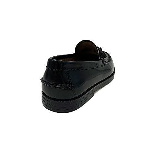 Scarpe da donna in pelle nera, bordeaux, suola in gomma, mocassini con nappe, prodotto in Spagna, Nero, 37 EU
