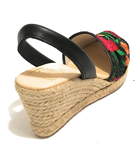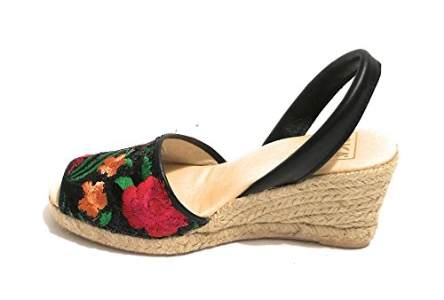 SKA Scarpe da Donna Sandalo MINORCHINA Shoes Zeppa Corda TC 70 MOD. Corsica Nero/Ricami Floreali DS18SK20