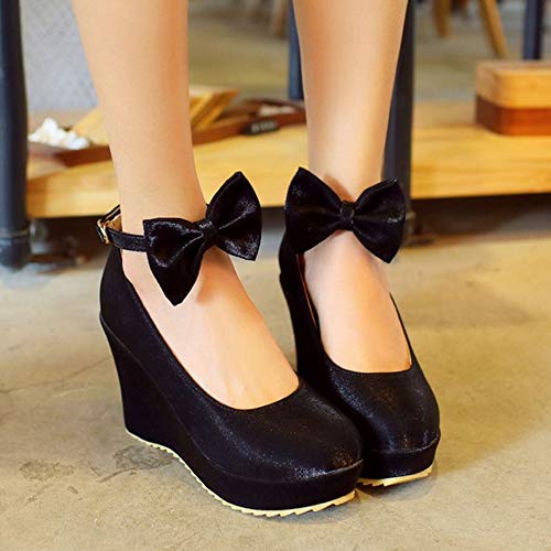 SJJH Scarpe da donna con zeppa e plateau, Nero, 48 EU