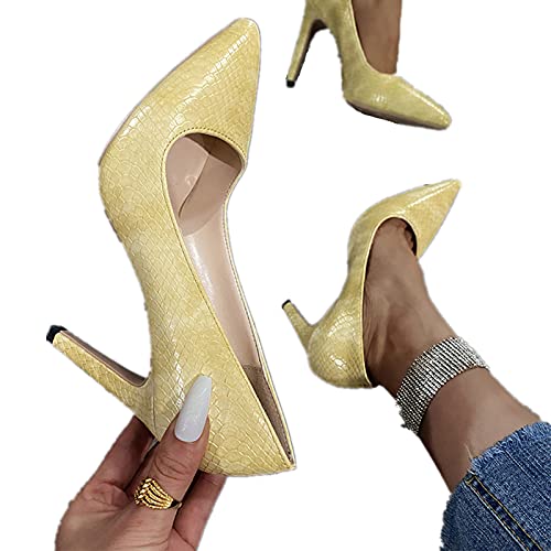 XFBH - Scarpe estive con tacco alto a spillo da donna con tacco alto, scarpe da sposa, taglia EU36-EU43 (taglia: EU36, colore: giallo)