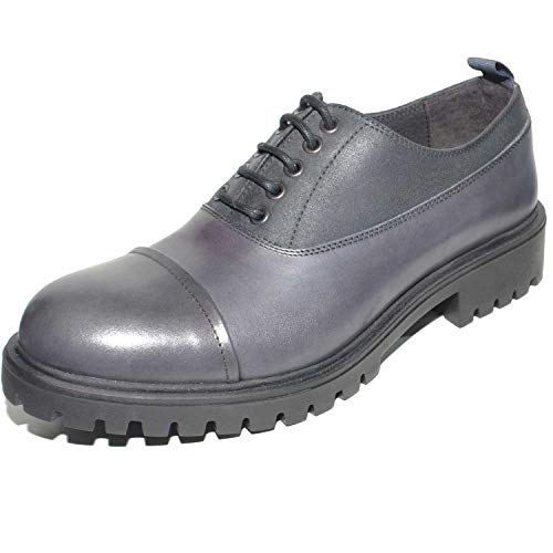 Scarpe Uomo Francesina Inglese Punta Alzata Vera Pelle Crust Grigio Made in Italy Fondo Classico Sportivo (45 EU)