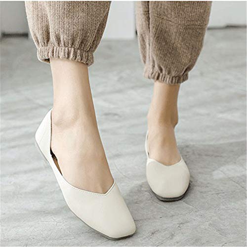Scarpe Lady Mary Jane - Scarpe da Ginnastica - Scarpe da Ballo Yoga - Ballerine - Scarpe in Morbida Pelle - Scarpe Quadrate (36,Beige)