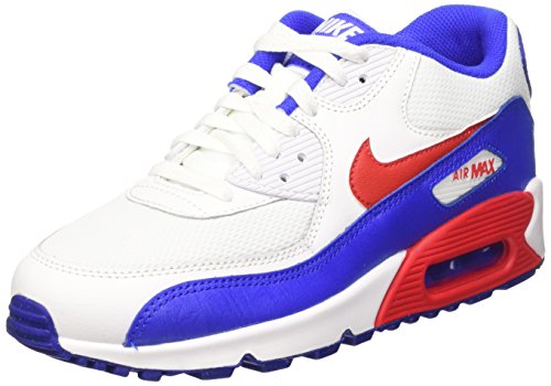 Nike Air Max 90 Mesh (Gs) Scarpe da ginnastica, bambini, Bianco / Rosso (White / University Red-Rcr Blue) (blu), 38 1/2