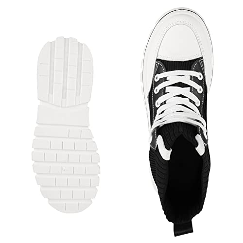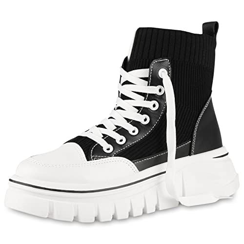 VAN HILL Scarpe da ginnastica da donna alte con tacco a cuneo, Nero, 37 EU