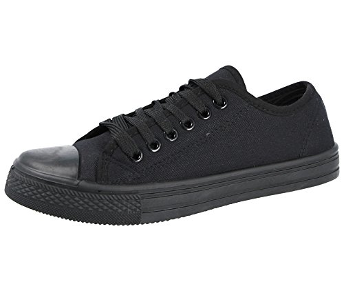 Scarpe da ginnastica da uomo in tela o in pelle poliuretanica, con lacci, basse, stile casual, Nero (Tutto nero), 42 2/3 EU