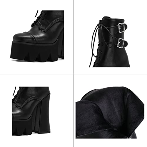 Scarpe Invernali Donna Platform Stivali da Combattimento Tacco Grosso Punk Gotico Stivaletti Biker con Fibbia,Nero,42 EU