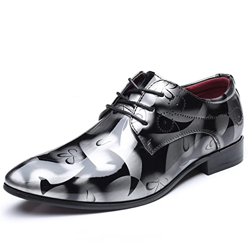 Scarpe da lavoro da uomo con punta a punta floreale in pelle verniciata con lacci Oxford, Grigio, 43.5 EU