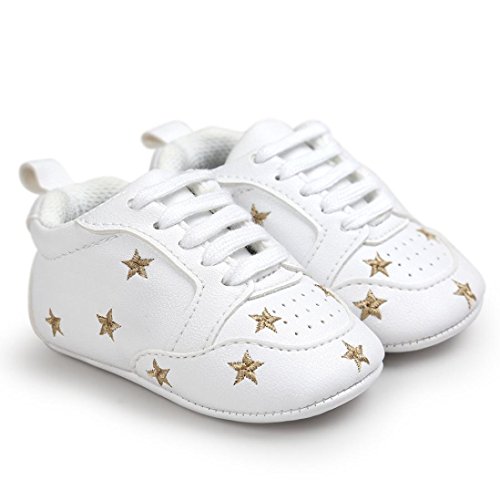 Scarpe Neonato Unisex inCotone Morbida - Stile Moda Star - Sneaker Antiscivolo (età: 0~6 Mesi, Oro Star)