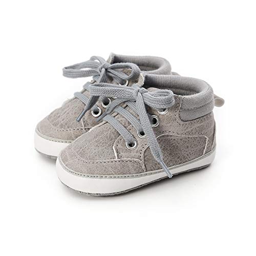 Scarpe per primi passi Bambino Bambina, Morbuy Pantofole Bambino in Morbida Pelle Scarpine in Pelle Prima Infanzia Scarpe da bambino antiscivolo PU artificiale (grigio,13cm/ 12-18 mesi)