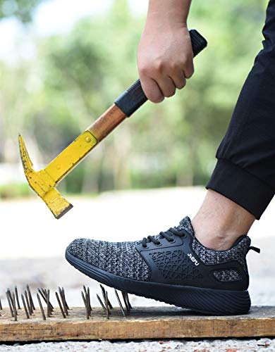 Scarpe con Punta in Acciaio Uomo Donna-Indistruttibile Leggero Traspirante Comodo Sicurezza Sneakers Larghe per Lavoro Grigio