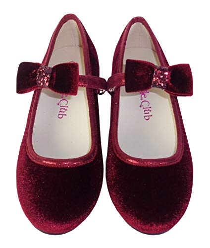 Scarpe da ragazza per bambini in velluto rosso profondo ballerina partito fiore ragazza, Rosso (Rosso), 23 EU