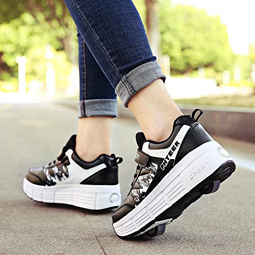 Scarpe con Le rotelle Scarpe con rotelle Bambino Scarpe da Rotelle Automatiche Skateboard Scarpe Pattini puleggia Invisibili con Regolabili Rotelle per Bambini Ragazze e Ragazzi,Nero,33