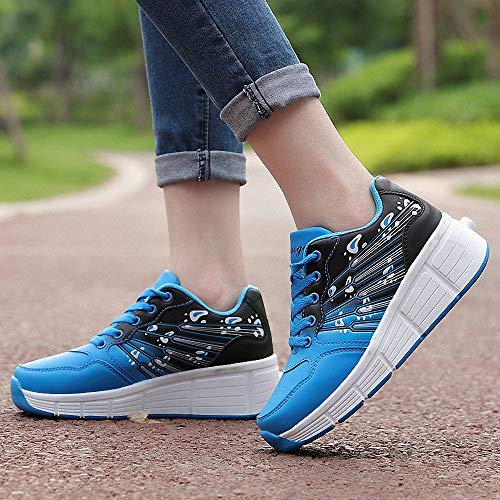 Scarpe con Rotelle Bambino Outdoor Running Sneaker Scarpe da Rotelle Automatiche Scarpe con Le rotelle Sportive Scarpe Skateboard Scarpe Pattini puleggia Invisibili con Regolabili Rotelle,Blu,28