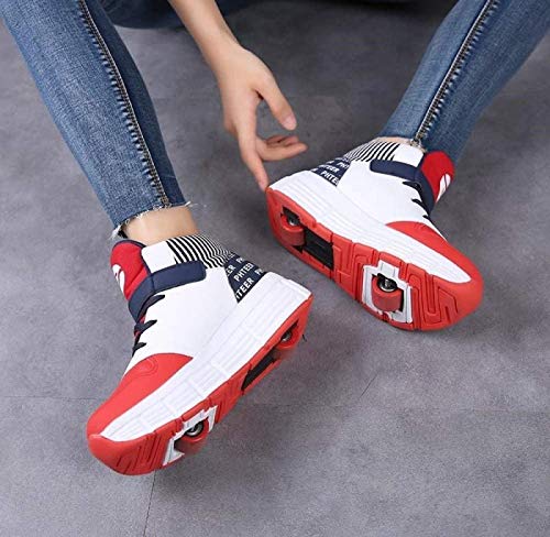 XPF Scarpe da Skateboard Scarpe da Ginnastica da Ginnastica Scarpe da Skateboard Scarpe da Ragazza per Ragazzi con Ruote Sneaker da Ginnastica da Corsa All'aperto,Red-41