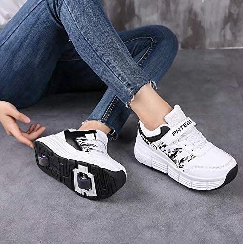 Scarpe da Skateboard delle Ragazze dei Ragazzi Scarpe con Rotelle per Bambini con 2 Ruote Pattini a Rotelle Scarpe Sportive Scarpe da Ginnastica con Ruote,White-38