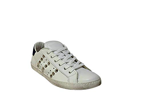 Scarpe Sneakers Basse Uomo Donna Pelle Bianco bucherellate Via con Borchie Cono