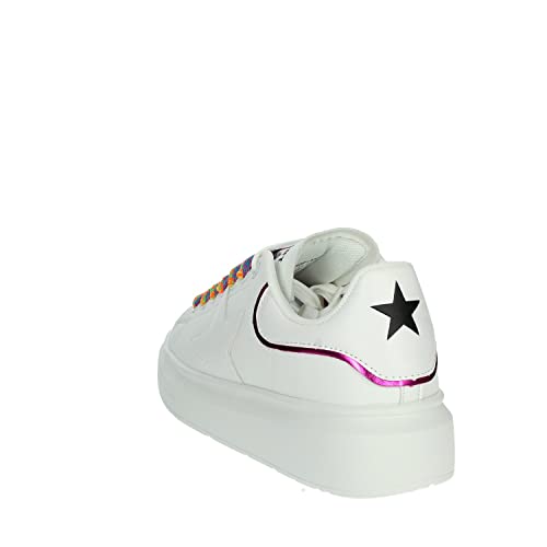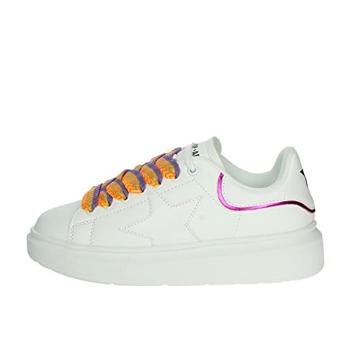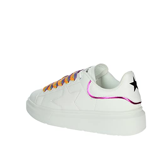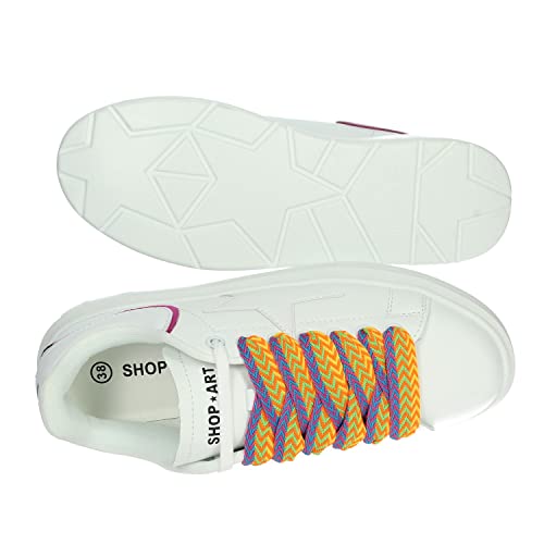 SHOP ART Scarpe Sneakers Donna Casual Sportive in Ecopelle Bianca con Lacci Multicolor. N.39